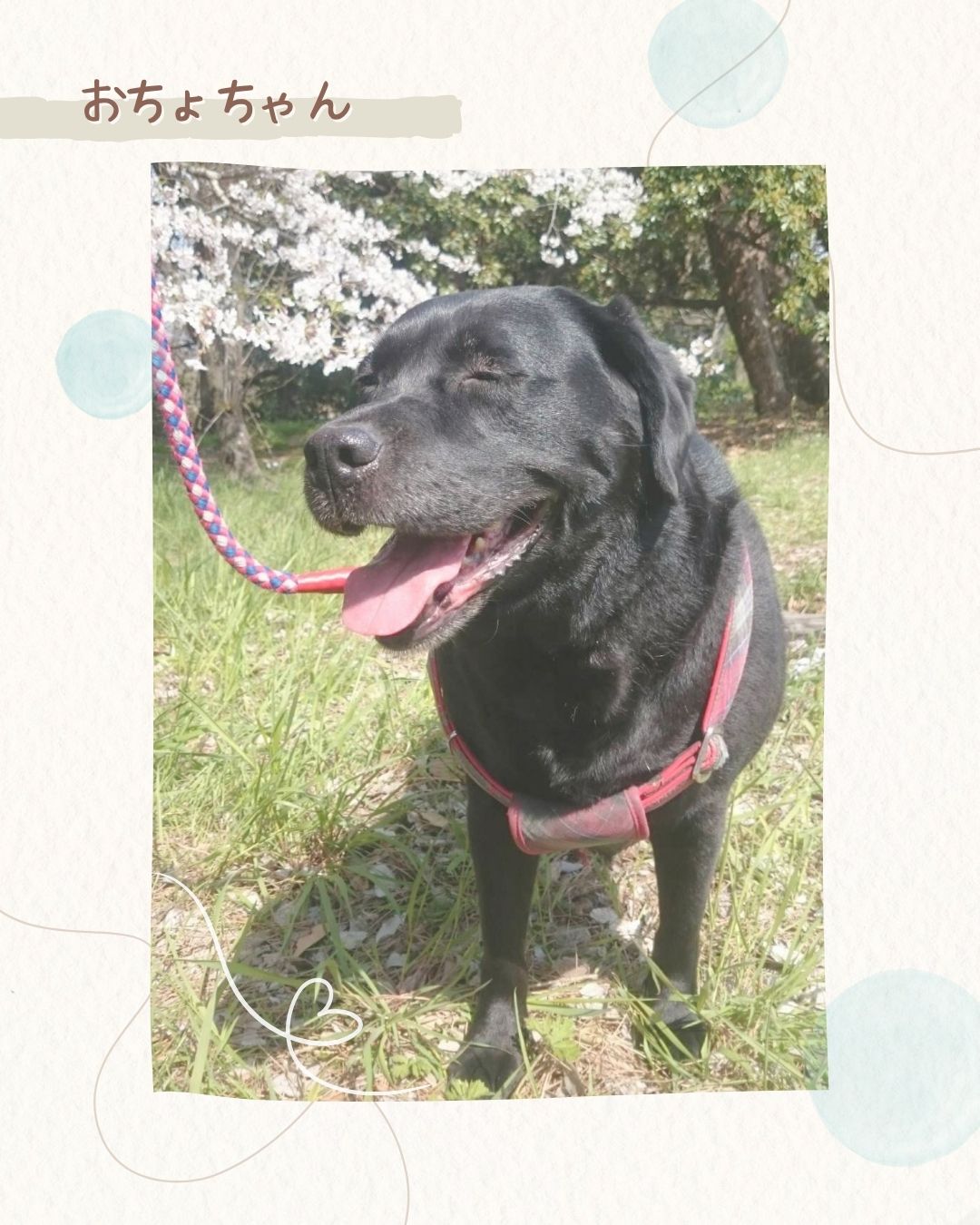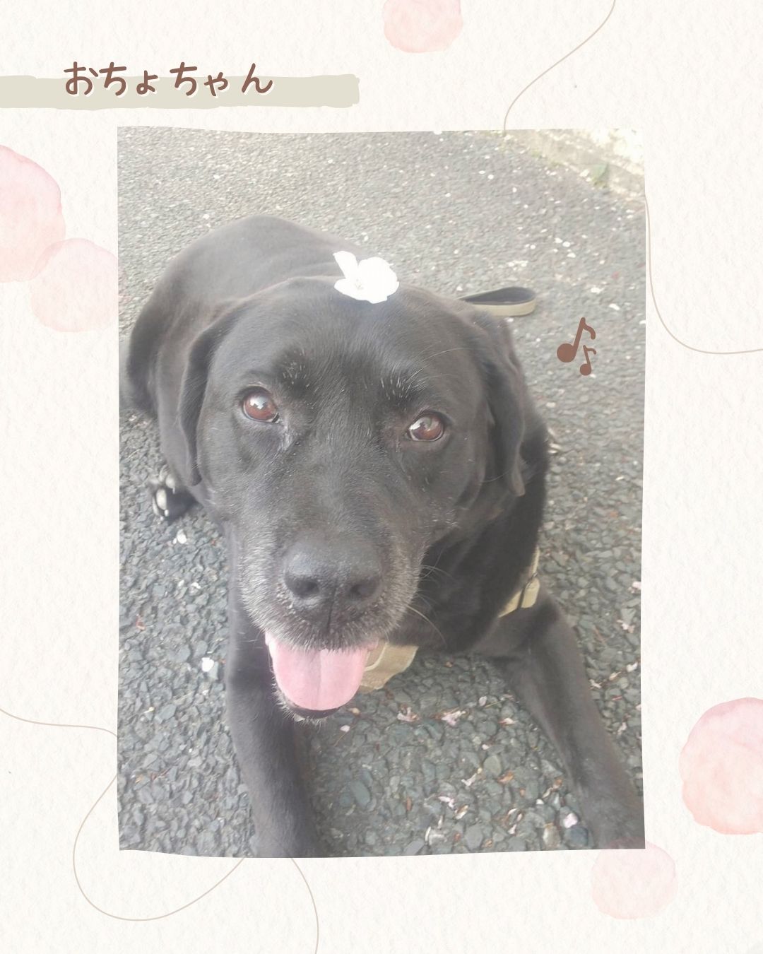やさしい瞳と朗らかな表情がとても癒されるラブラドールレトリバーの女の子、おちょちゃん。