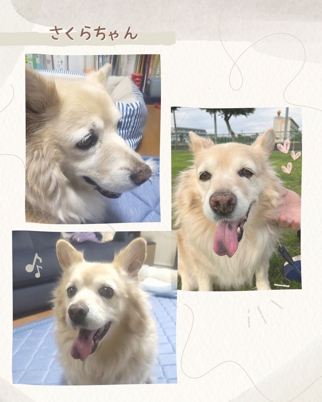 さくらちゃんは生後二ヶ月のときに里親さんから大切に譲り受けて家族の一員となりました。