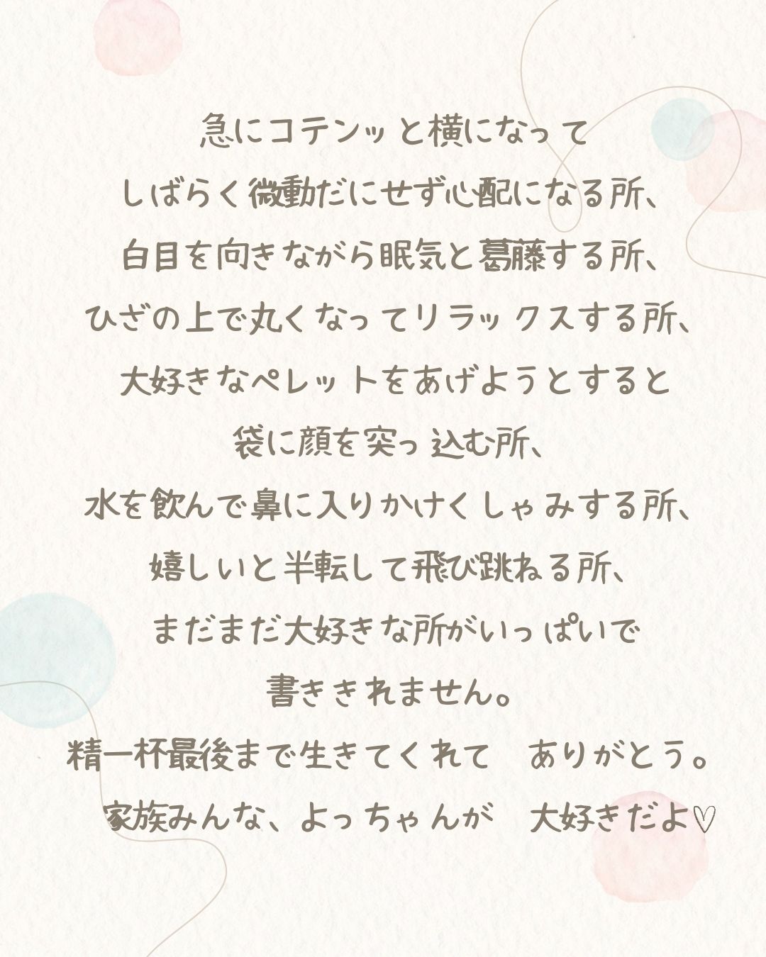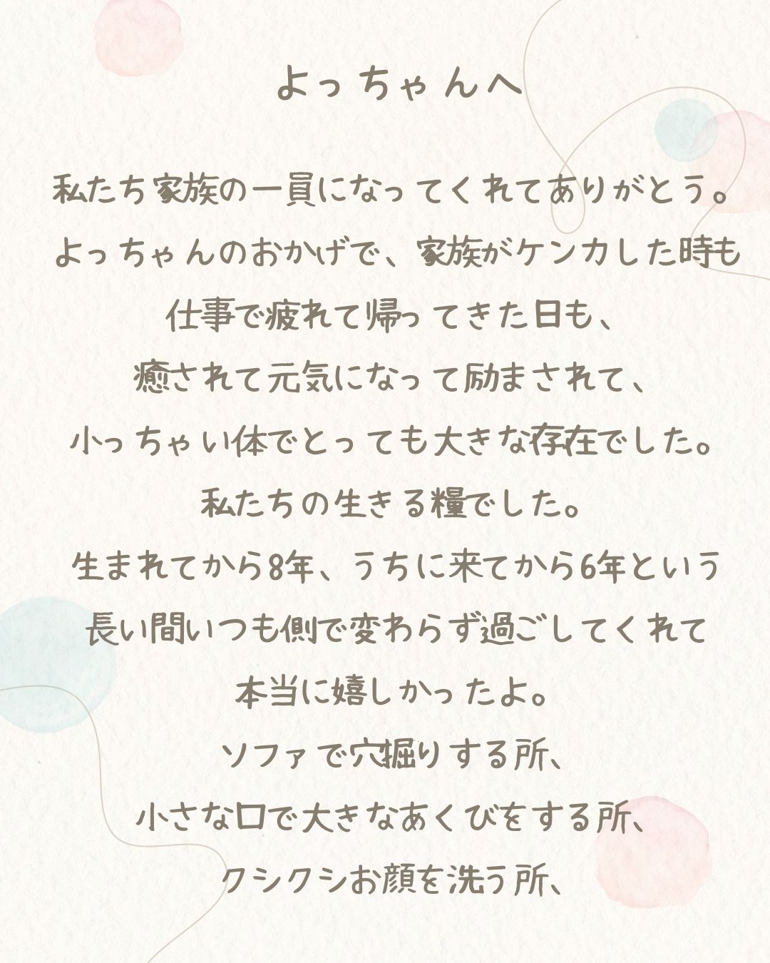 そして最期は、ご家族さまがみんな揃うまで待っていてくれた、とても優しい子でしたとご家族さま。