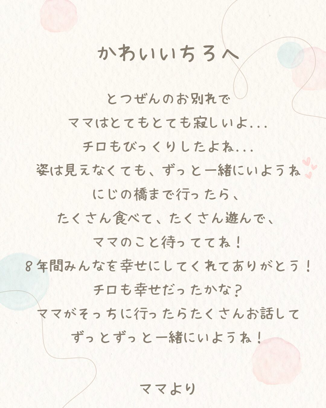 チロくんらしく、優しくてあたたかい毎日を送ってくれているといいですね💭
