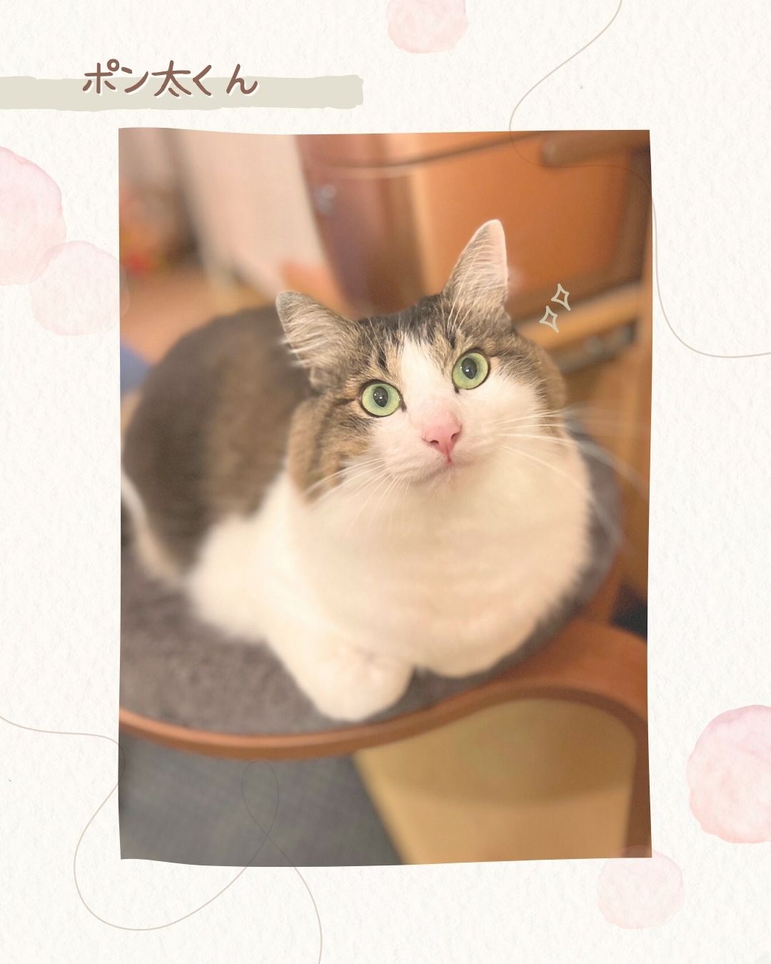 もふもふの毛と端正なお顔立ちがかっこいい猫の男の子、ポン太くん。
