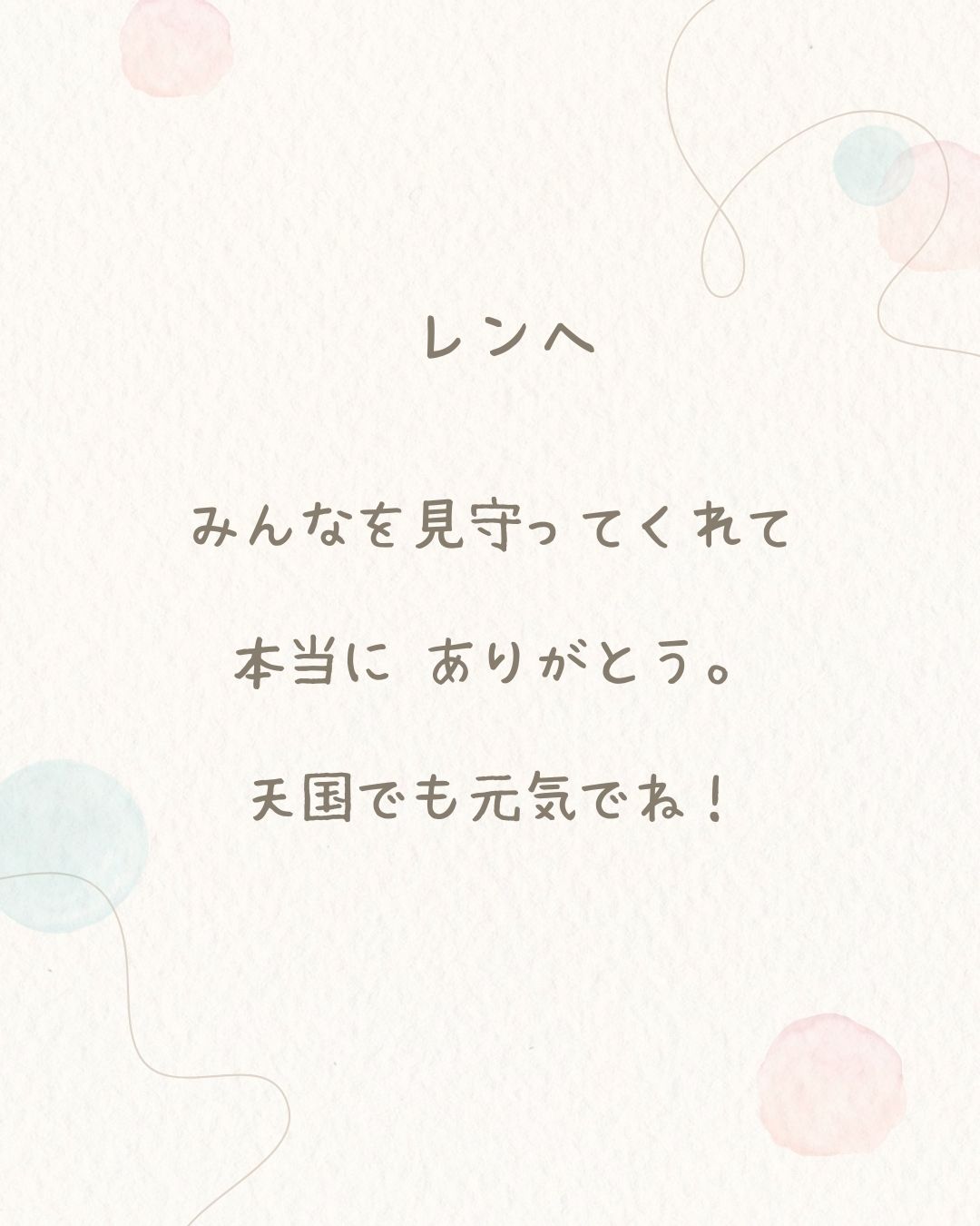 きっといつもと変わらないあたたかさに、きっとレンくんも安心してお空へいかれたことと思います。