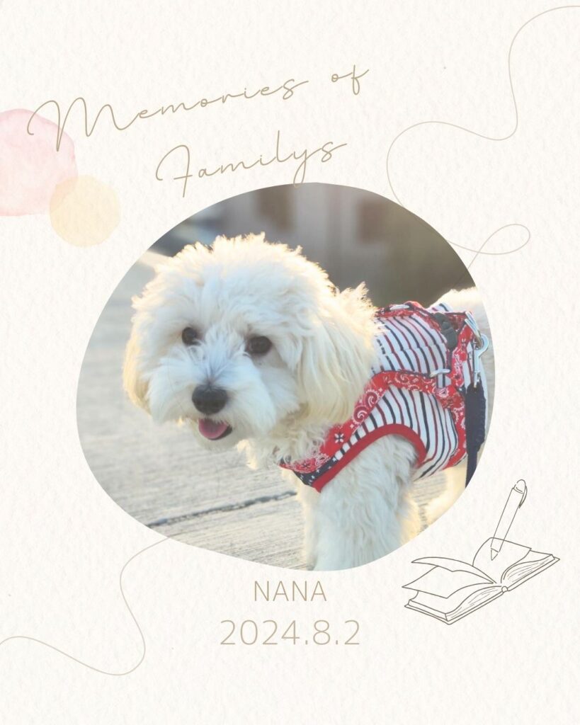 ななちゃんはご家族さまが大好きで、ちょっとさみしがり屋さんだったそうです。